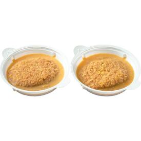 • 成型加工した豚もも肉を使ったトンカツとたまねぎスライスを和風だしと卵でとじました。カツには切れ目入りで食べやすくしています。トレイのまま上ぶたをはがしてレンジで加熱し、ごはんにのせるだけでカツ丼が出来あがります。