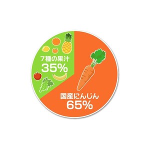 • 国産にんじん汁65%に、7種の果汁(りんご・うんしゅうみかん・オレンジ・バナナ・パインアップル・ぶどう・レモン)35%をミックスしました。にんじんは自然な甘みをいかし、果汁とブレンドすることで深みのある味わいに仕上げています。